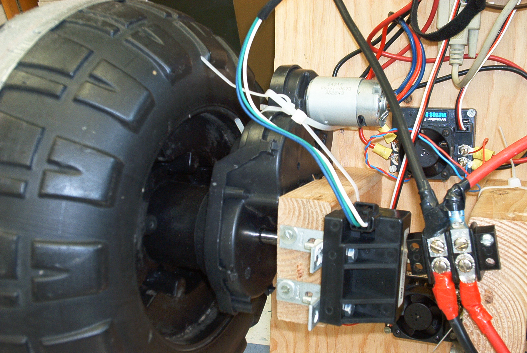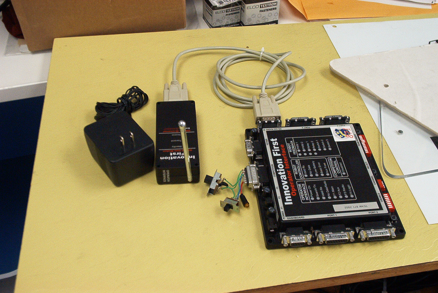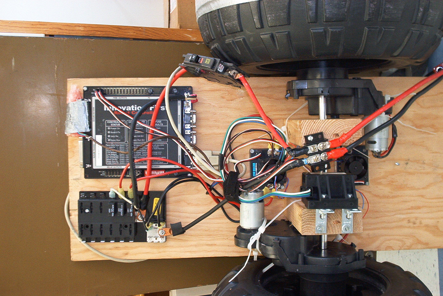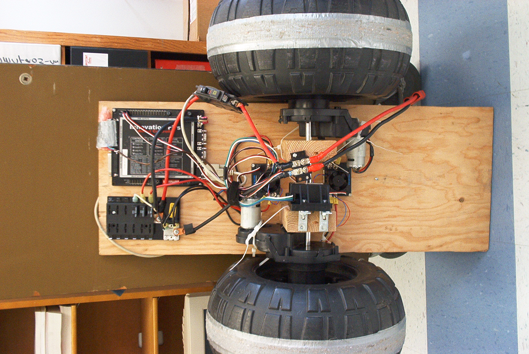 Up close and personal with the Craigway. Oh and be nice, it may look like crap, but we call it an engineering prototype. =^) All the stuff you see here is basically from the 2002 or 2003 Robotics Kit of parts.