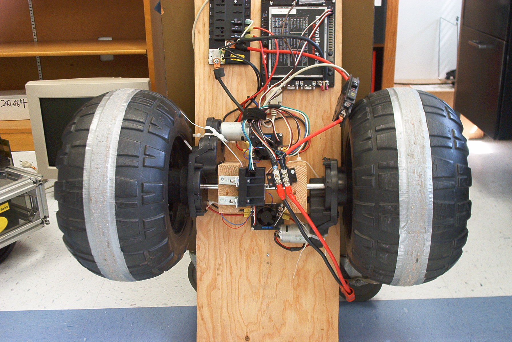 I cleaned it up a little for the picture, just a velcro strap around some wires. It's a very simple design. Like the segway it relies very heavily on the program. Which outside of several high level college projects few have attempted creating balancing robots.
