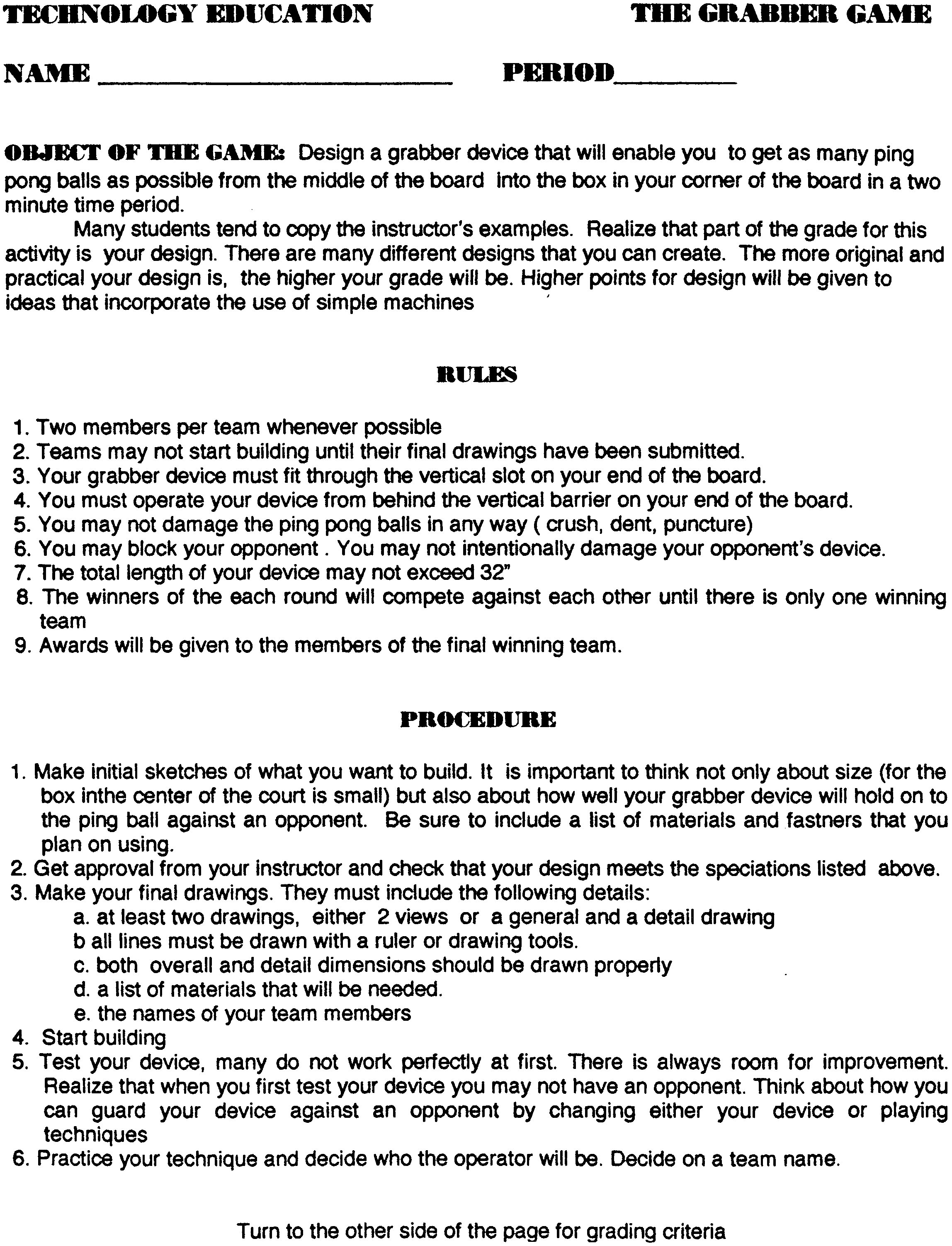 Game Rules (pic) Game Rules (doc) Evaluation Sheet